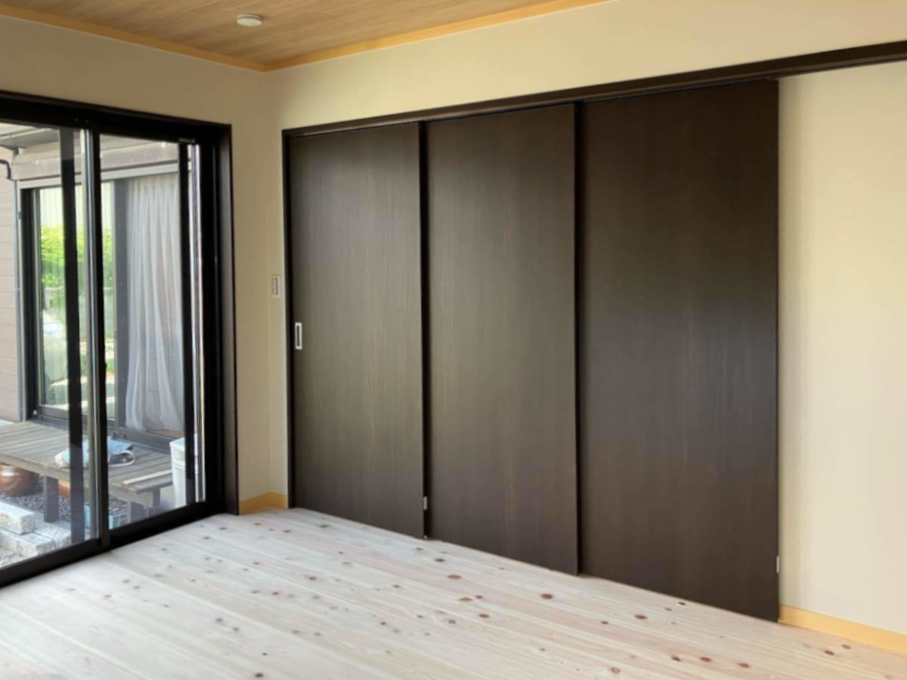 縁側との仕切りには、大きく開くことができる3枚引き戸を設置しました。