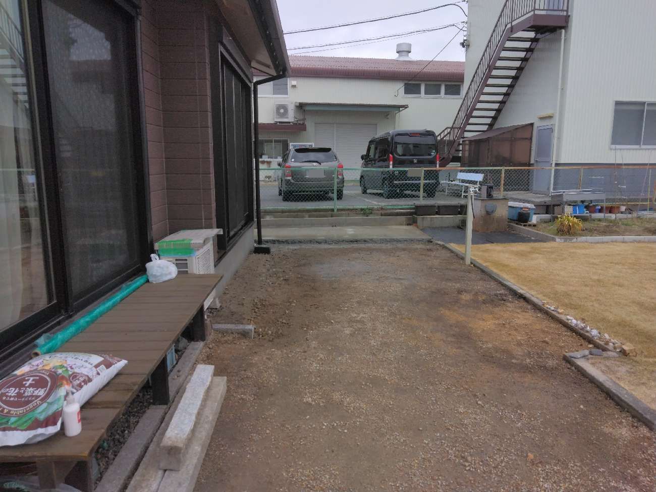 また、その隣には洗濯物を干したりBBQなどができるように、広さのあるウッドデッキも設置しました。