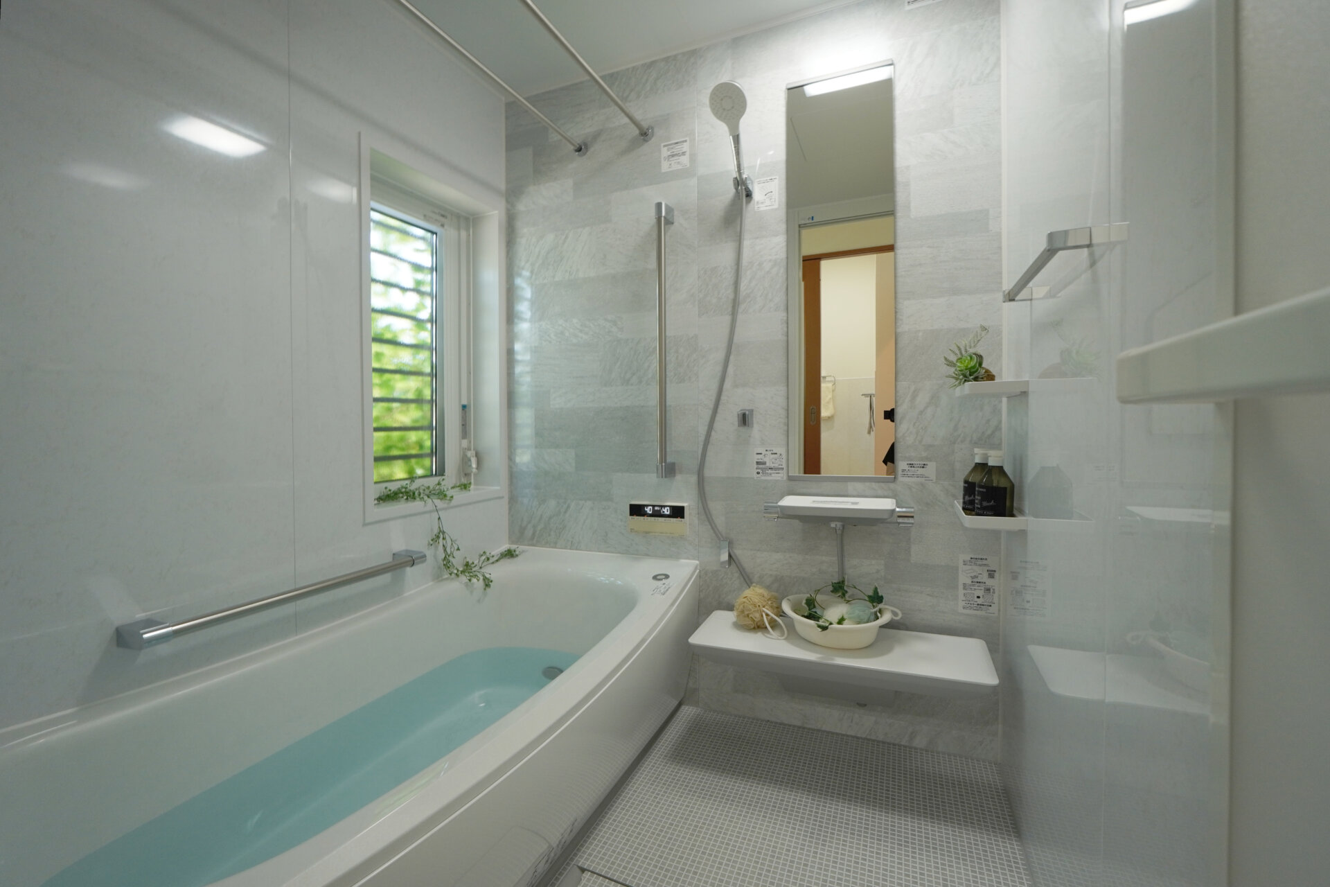 浴槽は、水や皮脂を弾いて汚れがつきにくい“お掃除ラクラク人大浴槽”を採用。