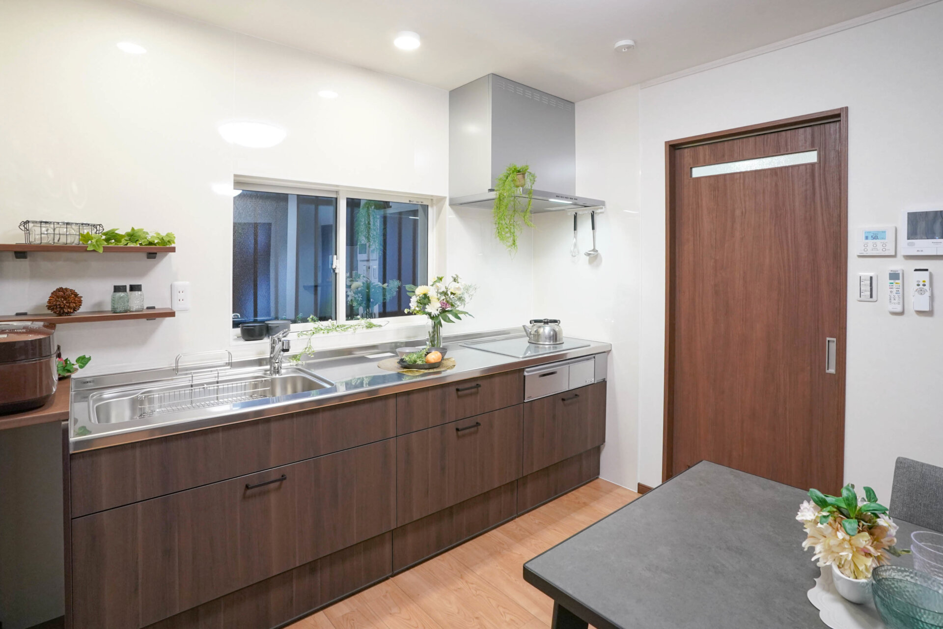 扉カラーは濃い木目調のクリエモカで、落ち着いた雰囲気に仕上がっています。