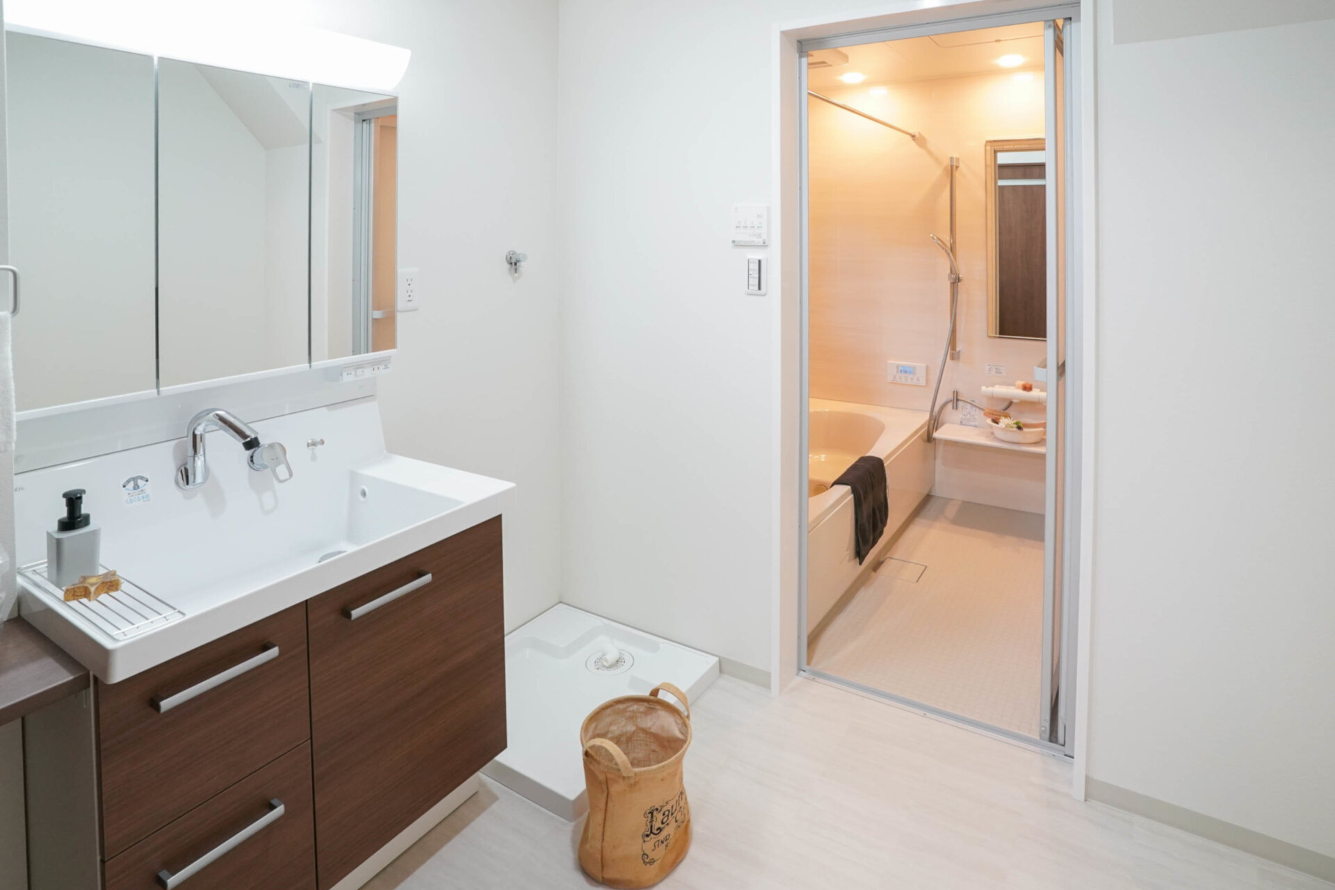 洗面台の向かい側には、収納家具を設置される予定です。